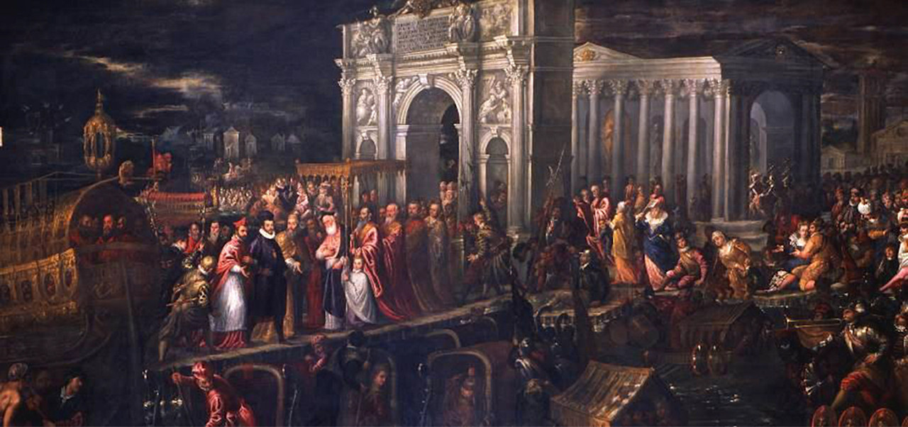 This Picture shows the welcome given by Venetians to Henry II from Valois in 1574.